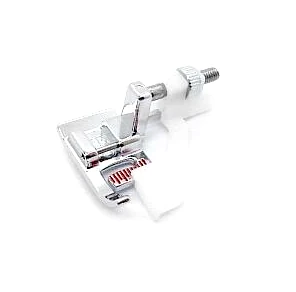 これはいわゆる端ミシン(コバステッチ)を等幅できれいにかけられる家庭用ミシンのアタッチメントです。
